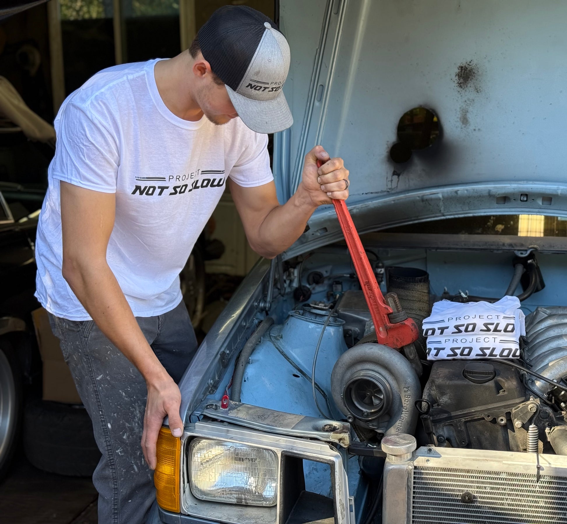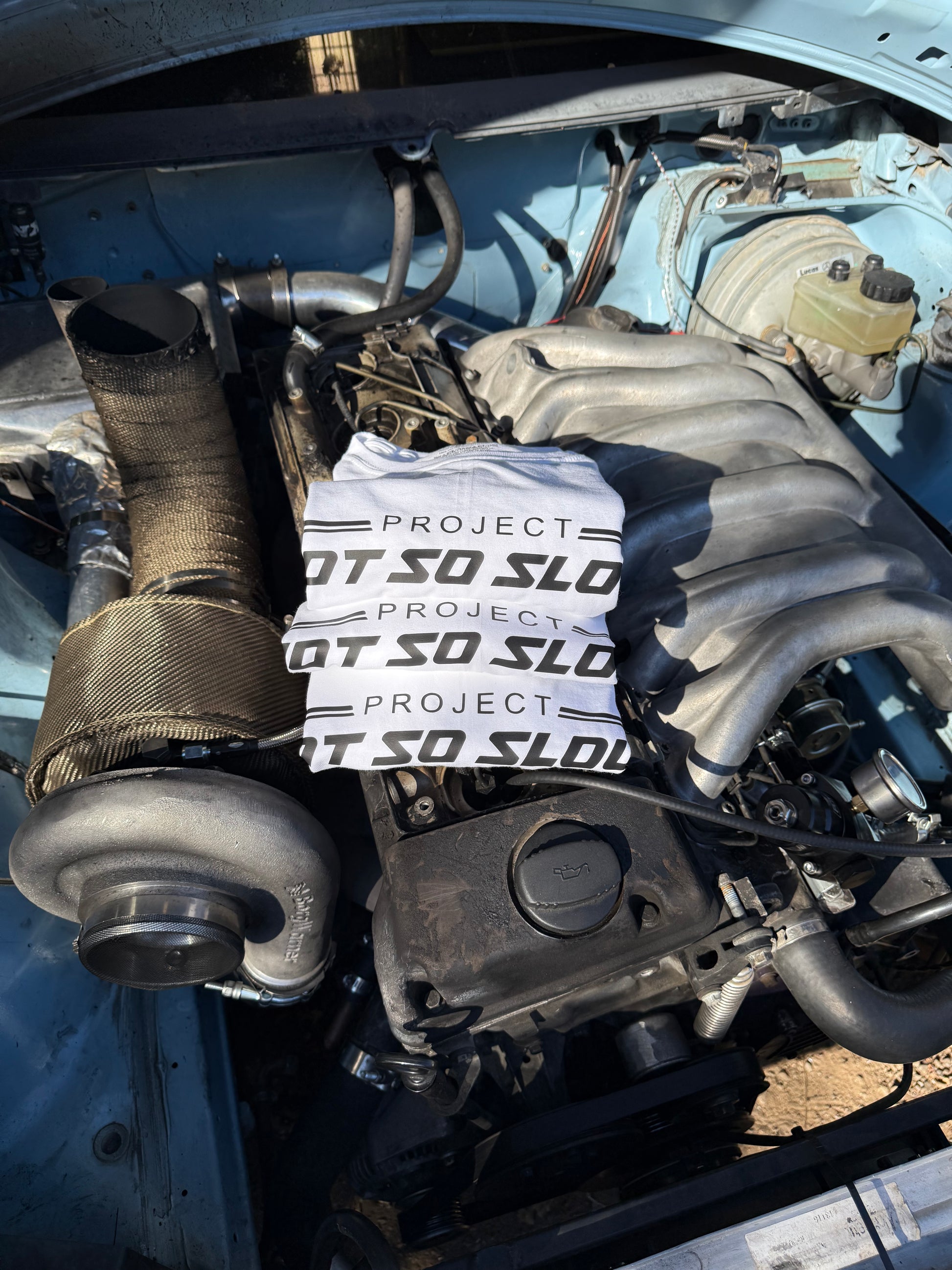 Three for the price of one is a bargain like no other. The Project Not So Slow Work T-shirt is a very comfortable 100% cotton T-shirt made so you dont have to be worried about getting it dirty when you’re slapping a big turbo on your old diesel Mercedes